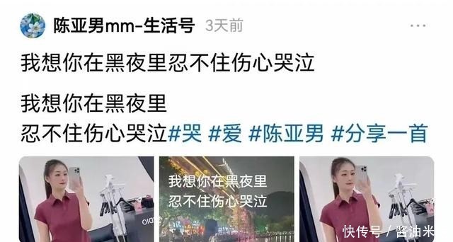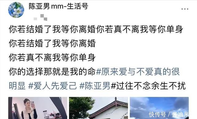 反观陈亚男,明明是抛弃别人的人,反而天天在社交平台上卖惨,称自己放不下这段感情。